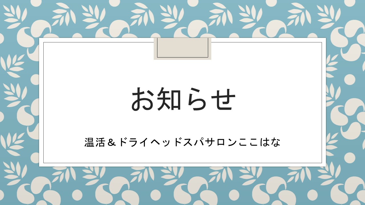 温活&ドライヘッドサロンここはなに関わる全てのお客様、スタッフ、そのご家族の皆様にご不安のない様に 努めたいと思っています。