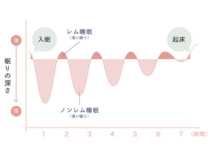 就寝中は、「レム睡眠」と「ノンレム睡眠」が繰り返し出現しますが、それぞれの